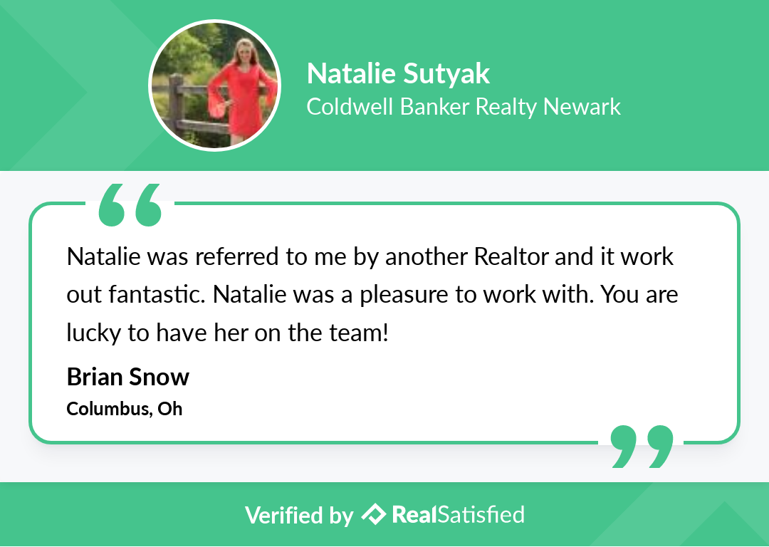 5 Star Review: Natalie was upbeat and fun to work with. She was open to our needs and very eager to answer all of our questions. She is very kind and thoughtful. As new home buyers, it was refreshing to have someone to remind us to have fun with this process. You could say we felt "right at home" with Natalie guiding us! We would recommend her to anyone!