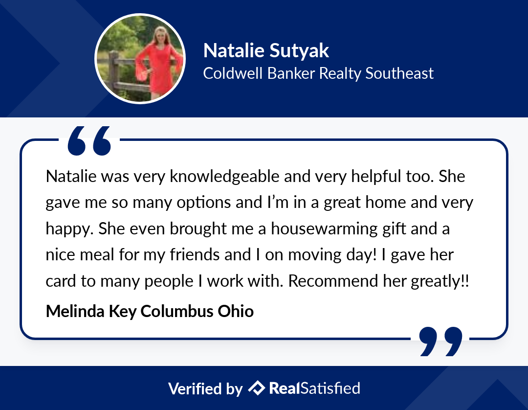 Natalie was very knowledgeable and very helpful too. She gave me so many options and I’m in a great home and very happy. She even brought me a housewarming gift and a nice meal for my friends and I on moving day! I gave her card to many people I work with. Recommend her greatly!!